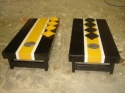The perfect set of cornhole boards for the pittsburgh steelers or penguins fan, since your teams all have the same colors! Our Standard, sturdy corn hole set painted in Black/White/Pgh Gold, with black and gold bags. Regulation sized, legs fold in for portability. Standard construction: 2x4 sides, 5/8" thick sturdy plywood tops.