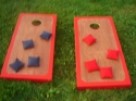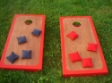 Get a set of regulation sized corn hole boards and bags,oak plywood 3/4" tops stained and trimmed in the color of your choice, and 8 bags. Finished in gloss polyurethane for a beautiful, durable finish.